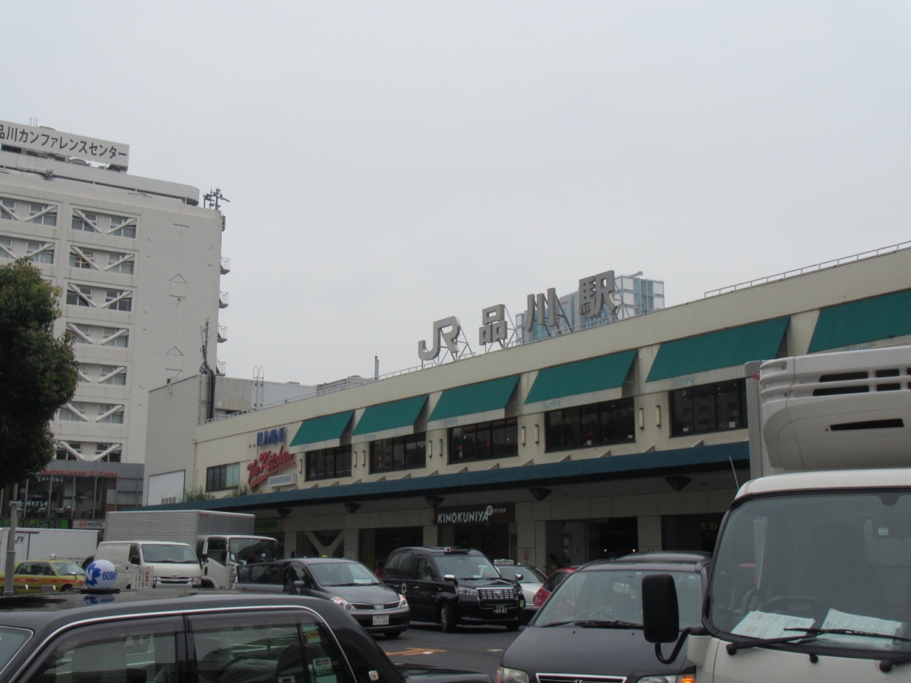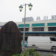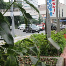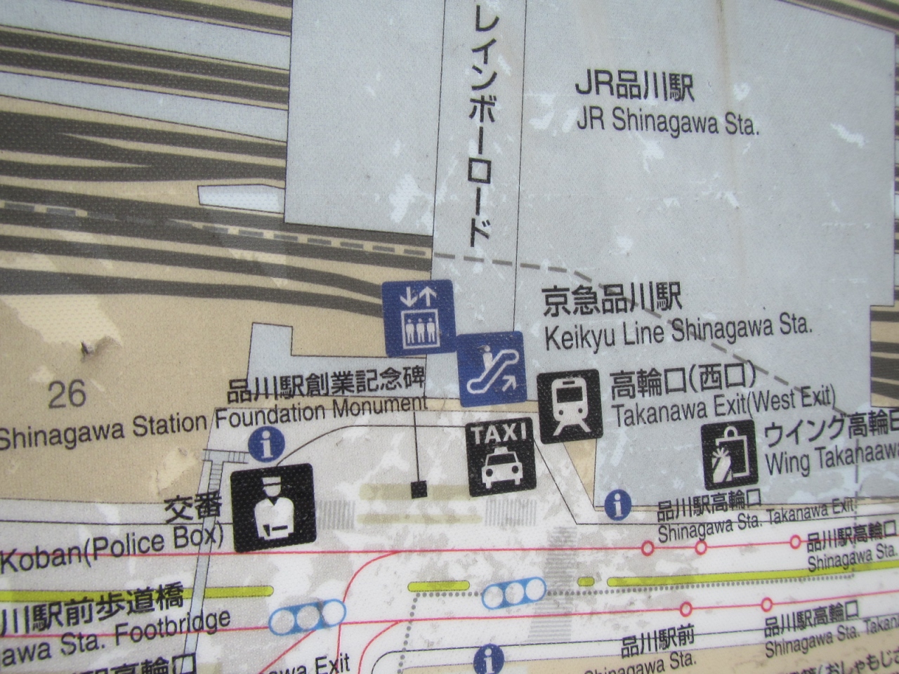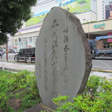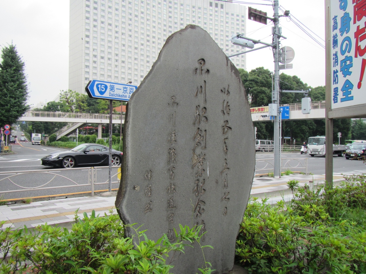 品川駅の高輪口(西口)を出て駅前ロータリー上にある石碑です。