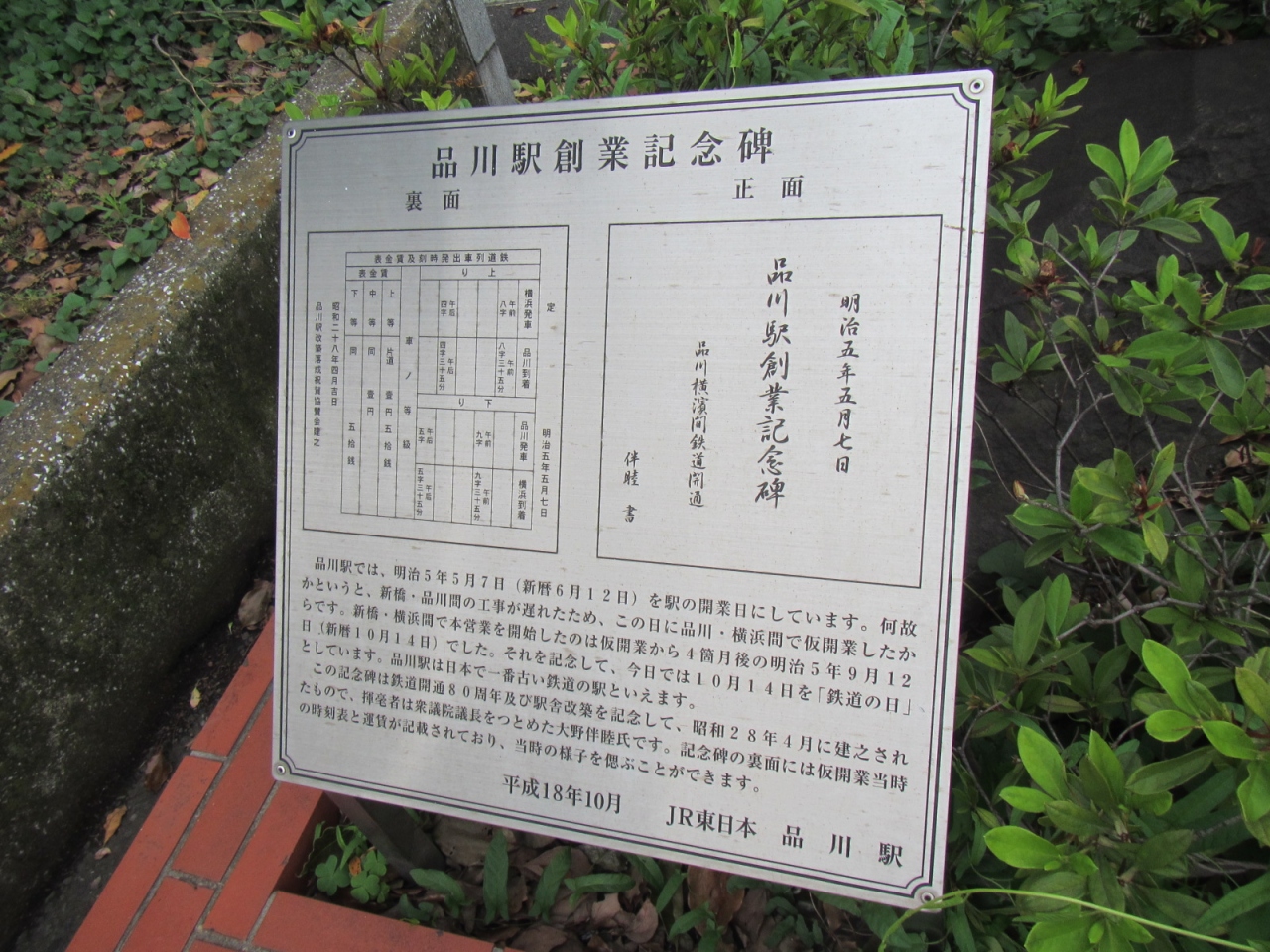 石碑の解説によると、日本で初めての鉄道が新橋―横浜間が開業する4カ月ほど前に既に鉄道の仮営業が品川―横浜間で始まっていたとのこと。