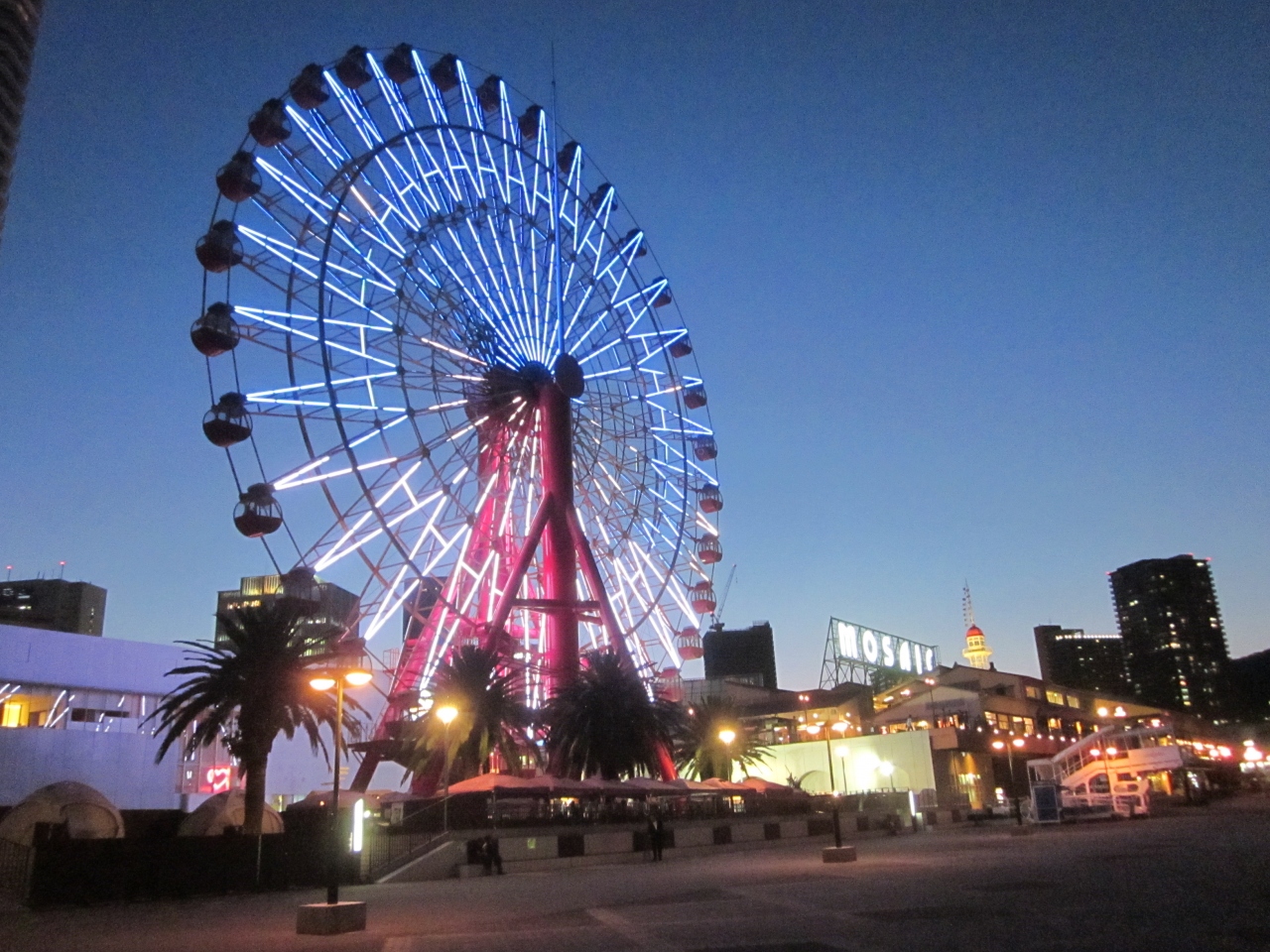 1993年に世界で初めてのイルミネーション機能を搭載した観覧車として六甲アイラAOIAにオープンしたが、1995年の淡路・阪神大震災で壊滅的な被害を受けて営業を断念し、同年12月にモザイクガーデンに移設されたようですね。