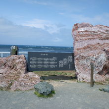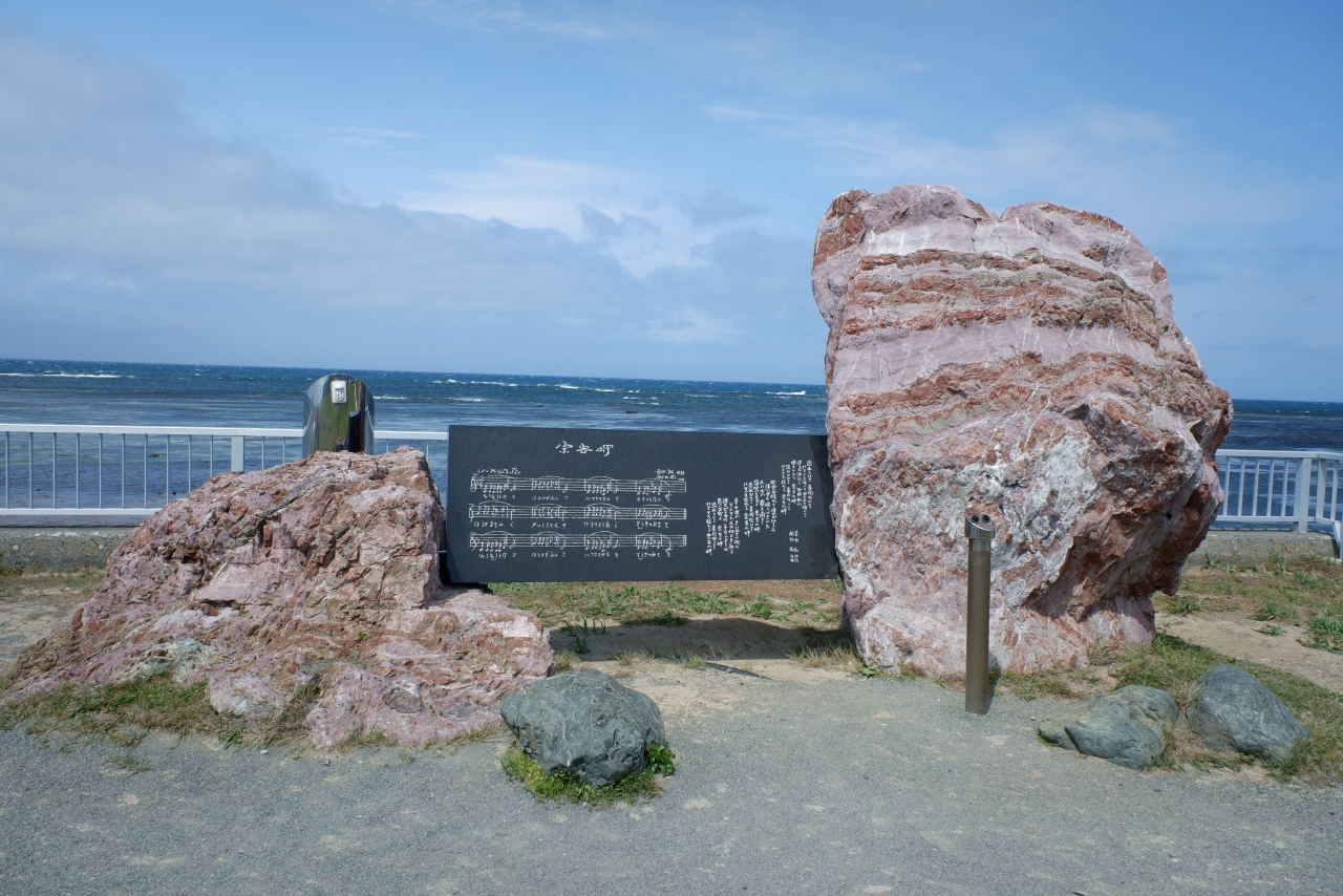 「宗谷岬音楽碑」は、「日本最北端の地の碑」のすぐ近く、海を背景に設置されています。デザイン性の豊かなとてもお洒落な石碑だと思いました。