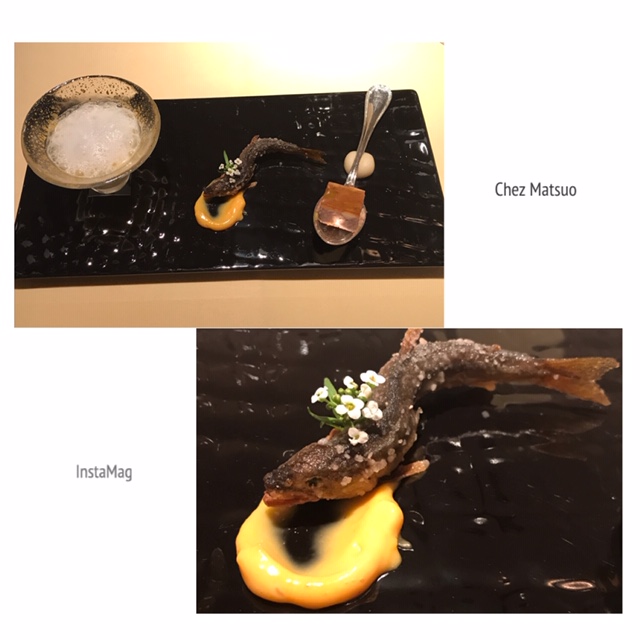 ・Amuse/北海道産のコーンを使ったスープ、稚鮎、お肉のテリーヌ
