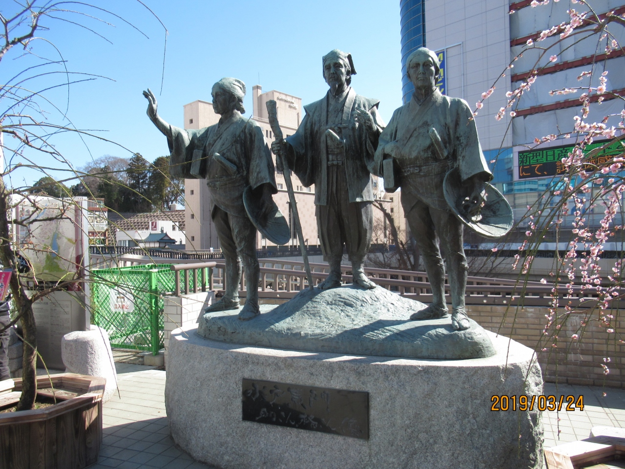 駅前ではモニュメントを見かけることが多々ありますが、ここの3人像は、