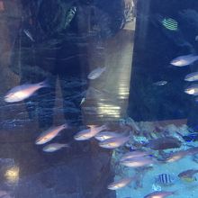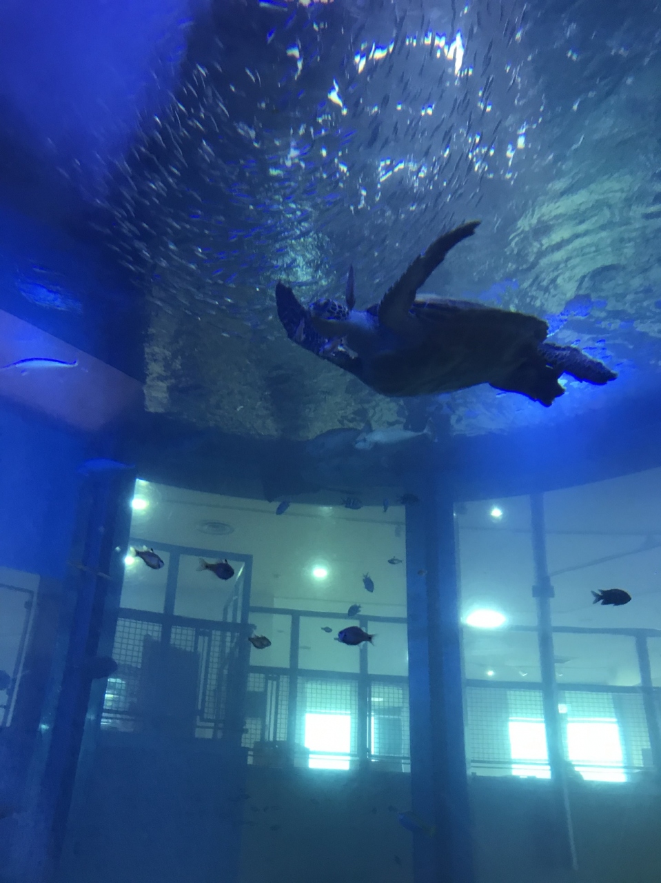 水族館ではないのですが、無料で楽しめる大きな筒型のアクアリウムがあります。家族連れやカップルを多く見かけました!これ、ひとりでも結構楽しめます。かなり癒されます!2階から見るのもオススメです!海ガメを見たことがなかったのでとても新鮮でした。