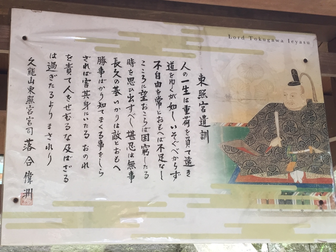 前に貼ってあった「東照宮遺訓」がとても素敵な言葉だと思い、写真におさめてきました。