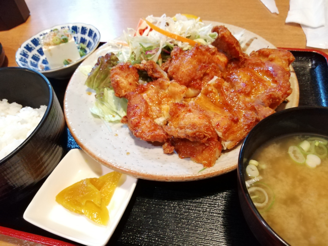 牡蠣小屋という名前ですが、鶏肉の唐揚げみたいな肉系のランチもありました。さんまの定食にするか迷ったけど、チキン一枚揚げにしました。大変おいしく、ボリュームもありました。