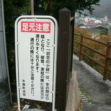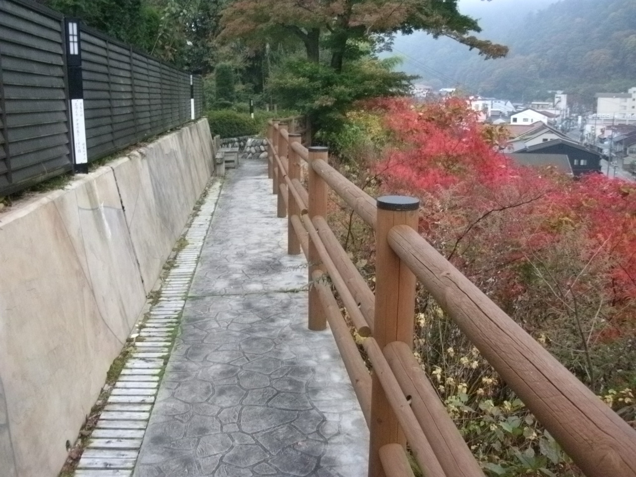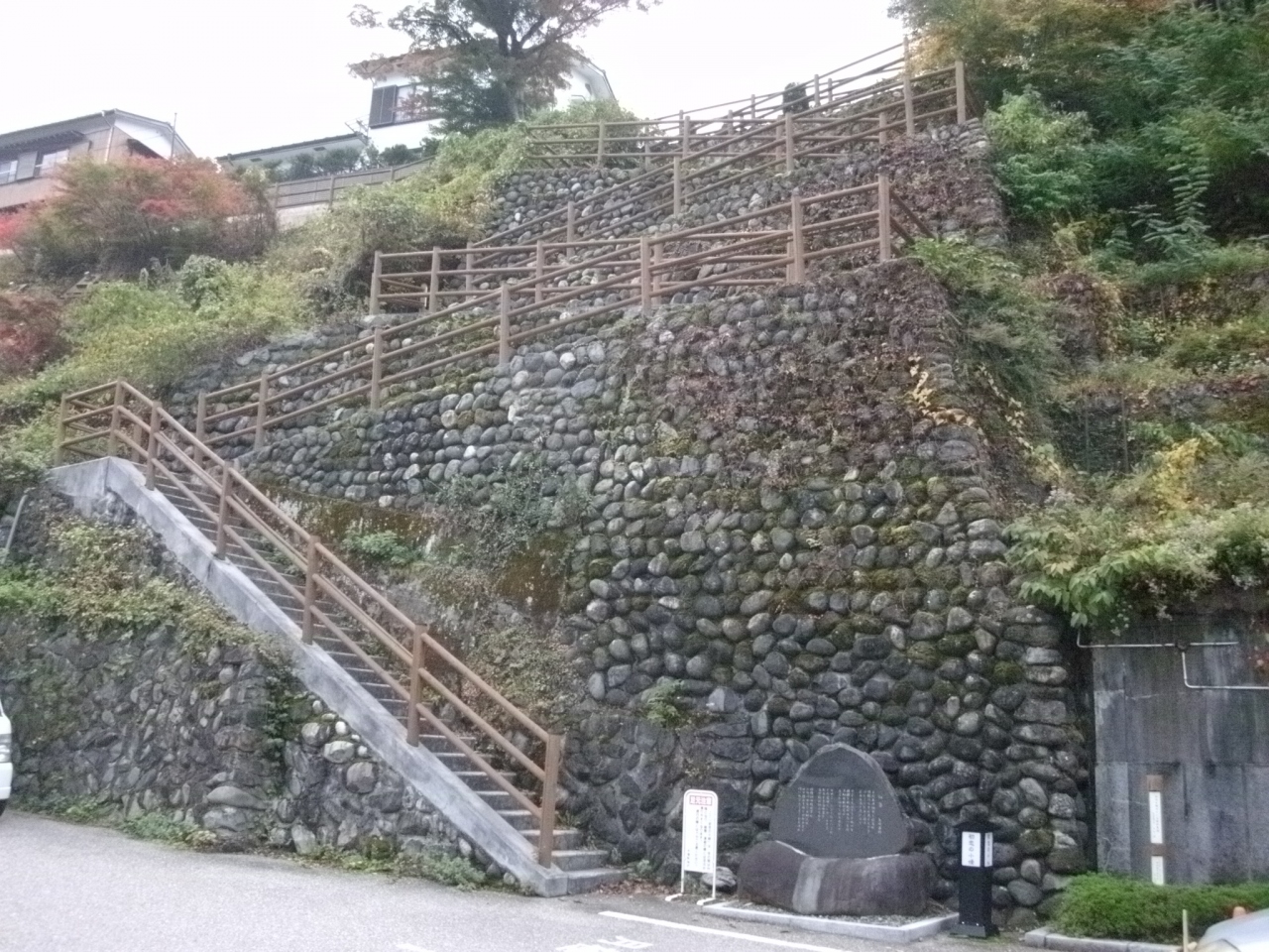 県道461号鳥居本町線(国道19号の旧道)の上町交差点の傍に福島関所駐車場があります。この駐車場の奥から急な階段があり、高瀬家藤村資料館に続く道が「初恋の小径」です。高瀬家は文豪・島崎藤村の姉(園)が嫁いだ先で、その縁から名付けられたようです。駐車場の階段入口には島崎藤村の初恋の石碑があり、途中の階段の手すりには木曽福島俳句大会の入選作品が掲示されています。福島の町や木曽川を見下ろす小径を通って、高瀬家藤村資料館や福島関所跡を観て回るのに良い散歩道だと思いました。