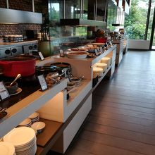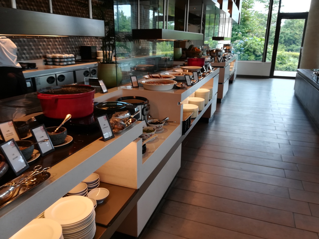 流石の素敵な内装のお店で、充実したサラダ、フルーツ、チーズ、点心、ソーセージやベーコンなどの肉類、干物、焼きたての卵料理、和の惣菜やマグロやアジ、ネギトロなどが自分で盛り付け出来る勝手丼を家族と戴けました。