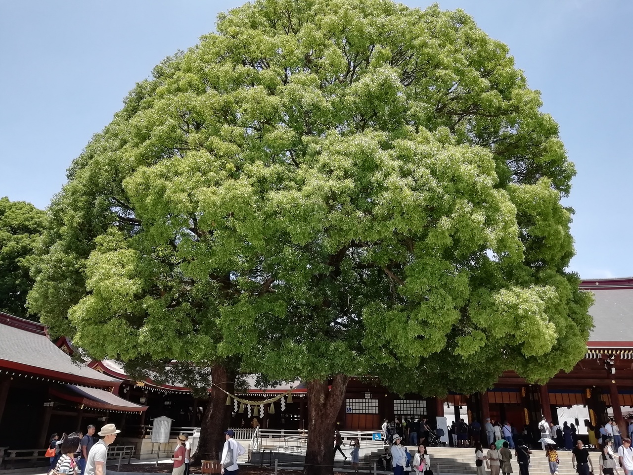 明治神宮の本殿を挟むように見える両側に、大きな楠がありました。立派な太い幹で、夫婦円満の御神木ということです。明治神宮創建当初からあるそうで、大正9年に植えられたとのことです。