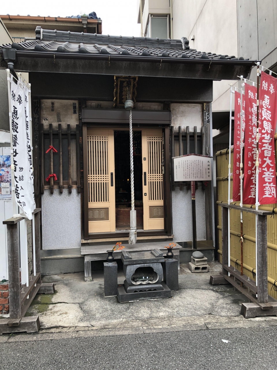 川崎大師に行くときに立ち寄りましたが、建物の間に挟まれていて少し窮屈そうな感じでした。現在は縁結びのご利益もあると信じられているそうです。別の機会に見たときは門が閉じていたので、門の開閉時間があるようです。