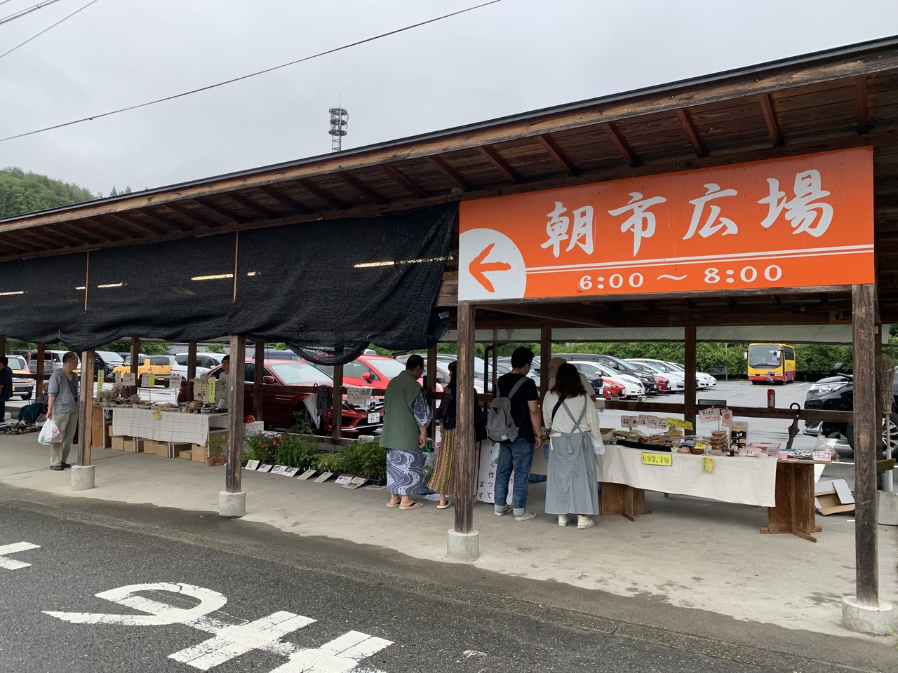 なんと毎朝6時(冬場は6時半)からやっています。野菜や漬け物などを中心に売っていますが、占いもありました。屋根もあるので雨が降っても大丈夫です。専用の駐車場もあり、その奥側には足湯もありました。手作りくるみ味噌を買いましたが、絶品でした。