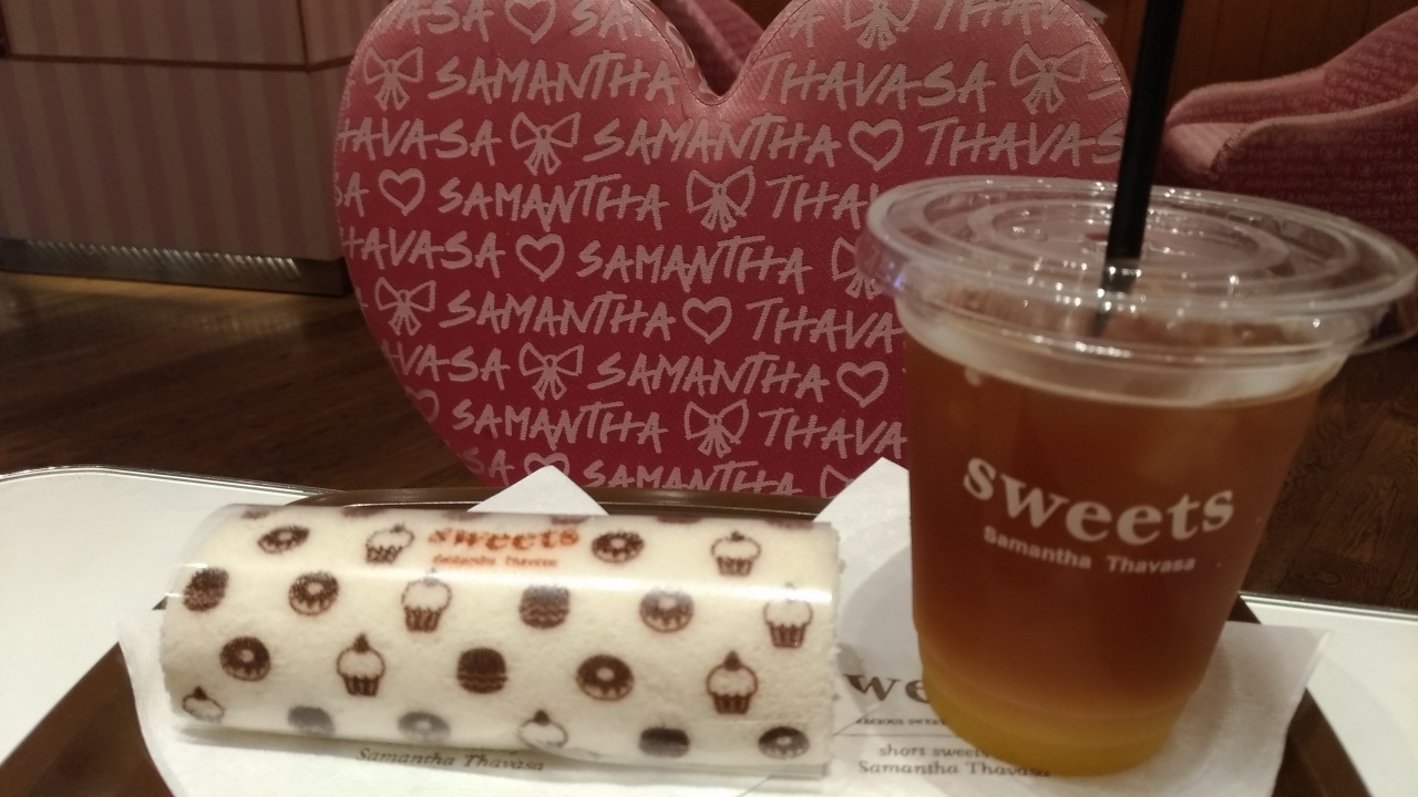平日の夜ですいてました。バッグ売り場もありますが、手前がケーキ販売とカフェが併設。カフェといってもファーストフードみたいな感じです。ケーキとドリンクのセットが500円。オレンジアイスティーとロールケーキを注文。アイスティーでも400円でケーキ450円なのでお得。ケーキは見た目がかわいい。味は普通でした。