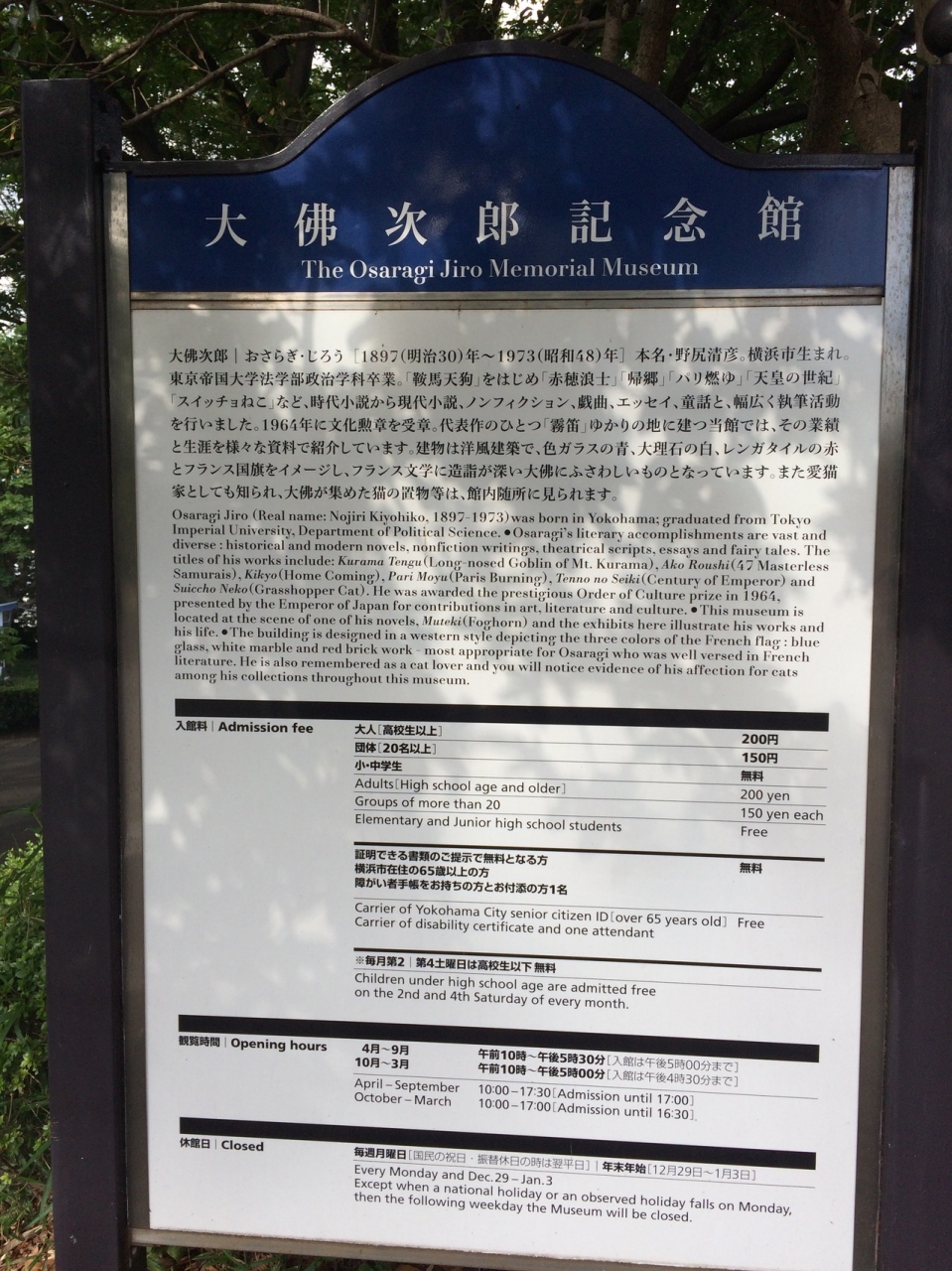 横浜で山手散策をした時に、港の見える丘公園に行く途中にありました。入館料が必要です。大佛次郎については、看板を見るまでは知りませんでしたが、横浜生まれの作家です。館内、記念館の敷地にはブロンズ像の猫が何個かあり、可愛かったです。