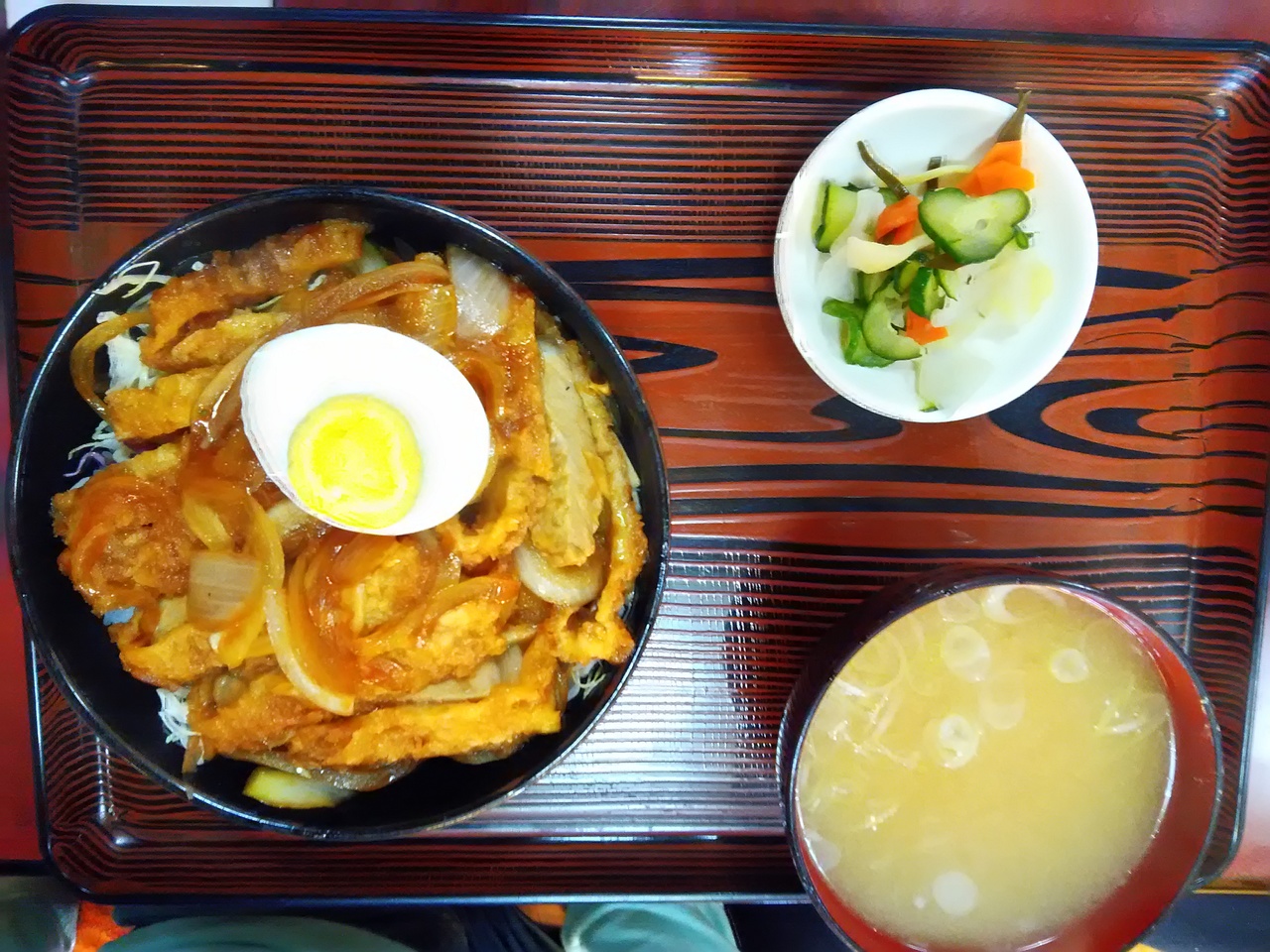 秩父にキャンプに来た際、三峰口駅にSLパレオエクスプレスを見に行きました。11時過ぎに三峰口駅に着いたので、駐車場に車を止め(有料)、駅周辺を散策し、SLパレオエクスプレスが来るまでにランチを食べることにしました。選択肢はあまりなく、子連れなので、駅前の立ち食いそば店はやめて、お座敷もあったこちらのお店に入りました。そば・うどん・丼物メニューがあり、家族それぞれ好きなものを頼み(味自慢のカツ丼・ソースカツ丼・冷やしうどん・肉そば)、シェアしていただきました。味自慢のカツ丼は、衣がすごく厚くて、失敗したホットケーキのような衣で、驚きました。どれも家庭の味で、食べやすかったようで、子どもたちは良く食べていました。