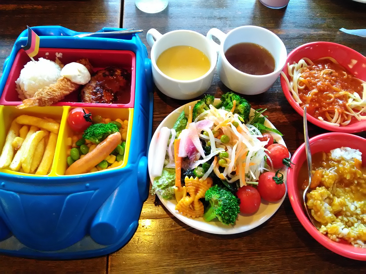 お出掛け帰り、少し早めの夕食を、家族みんなが大好きなこちらのレストランで食べました。夕食には少し早めの時間だったので、ほとんど待つことなく、席に案内してもらいました。「ダブルオールスターハンバーグ」や「合挽ハンバーグ」、「お子さまセットハンバーグ」などとドリンクバーを注文し、いただきました。こちらのレストランは、全品サラダバー・ライス付で、サラダバーには、生野菜やサラダ(種類も豊富にありました)の他、スープ、カレーライス、ミートスパゲティ、フルーツ、デザート(コーヒーゼリーやプリン、フルーツ入りのヨーグルト、ソフトクリームバー)などがあり、大変充実しています。注文したらすぐサラダバーとドリンクバーへ好きなものを取りに行き、子どもたちはすぐに食べ始められるので、大人もゆっくりお食事をすることができます。ハンバーグはもちろん、どれも美味しく、デザートにアイスクリームまでいただいて、今回も子どもたちも大人も大満足、満腹の夕食となりました。