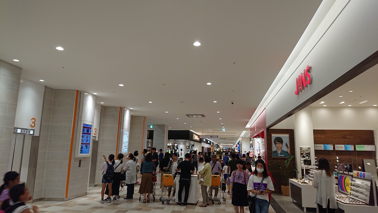 2019年6月27日にオープンした新しいショッピングモール。これまで米軍キャンプであった浦添西海岸に建てられて地上5階建てのビルで、1階から3階までが店舗。4階以上は駐車場で。5階には海を見ることのできる簡単な展望台もあります。正式には「サンエー浦添西海岸 PARCO CITY」と言う名称で、会社も地元サンエーの主導する会社が運営していますが、1階の食品館と2階の小さな衣料品、駐車場前の黄色いサンエーの看板を除けば、雰囲気は完全にPARCOで、他のショッピングモールにはない雰囲気で、おしゃれ。250の店舗のうち100近くが沖縄初出店ですが、高級店というよりは庶民的なお店も多い気がしました。沖縄ではライカムに次ぐ大きさのとのことですが、同じ階を回ってもライカムほど広いとは感じず、むしろちょうどよい広さ。フードコートほ、沖縄初進出のお店と沖縄ではメジャーなお店の両方あり、ローカルにも観光客にも満足できる構成かと。一人用の席も結構ありました。駐車場が4000台分くらいあるので、車社会の沖縄であれば心配はないのかもしれませんが、現在は期間限定(いつまでかはわからない)で、おもろまち駅と第二城間こらシャトルバスが1時間数本出ているので便利ですが、路線バスがほとんどないので、車のない人には今後は不安。