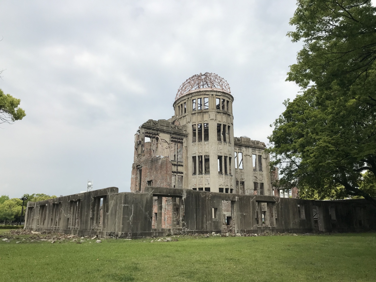 原爆ドームの実物を見たのは初めてでした。周りの建物が吹き飛ばされる中、これだけの建物が残るのは奇跡なんでしょうね。原爆ドームの柵の周りを1週しましたが、ドームの周りには吹き飛ばされた瓦礫が今もそのまま残されていて、原爆の痛ましさを今に伝えています。