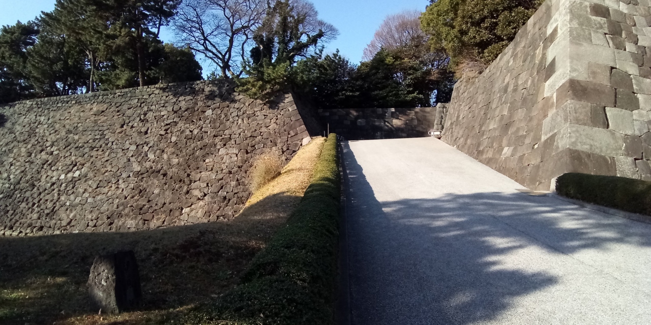 汐見坂は、二の丸庭園と、それより高い江戸城跡を結ぶ坂で、白鳥濠横にあります。見どころは、立派な巨大な石垣です。かなり傾斜が急なので、登るのには疲れますし、降りるのには転倒しないように注意する必要があります。