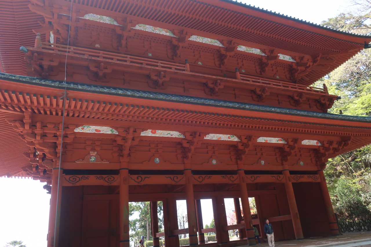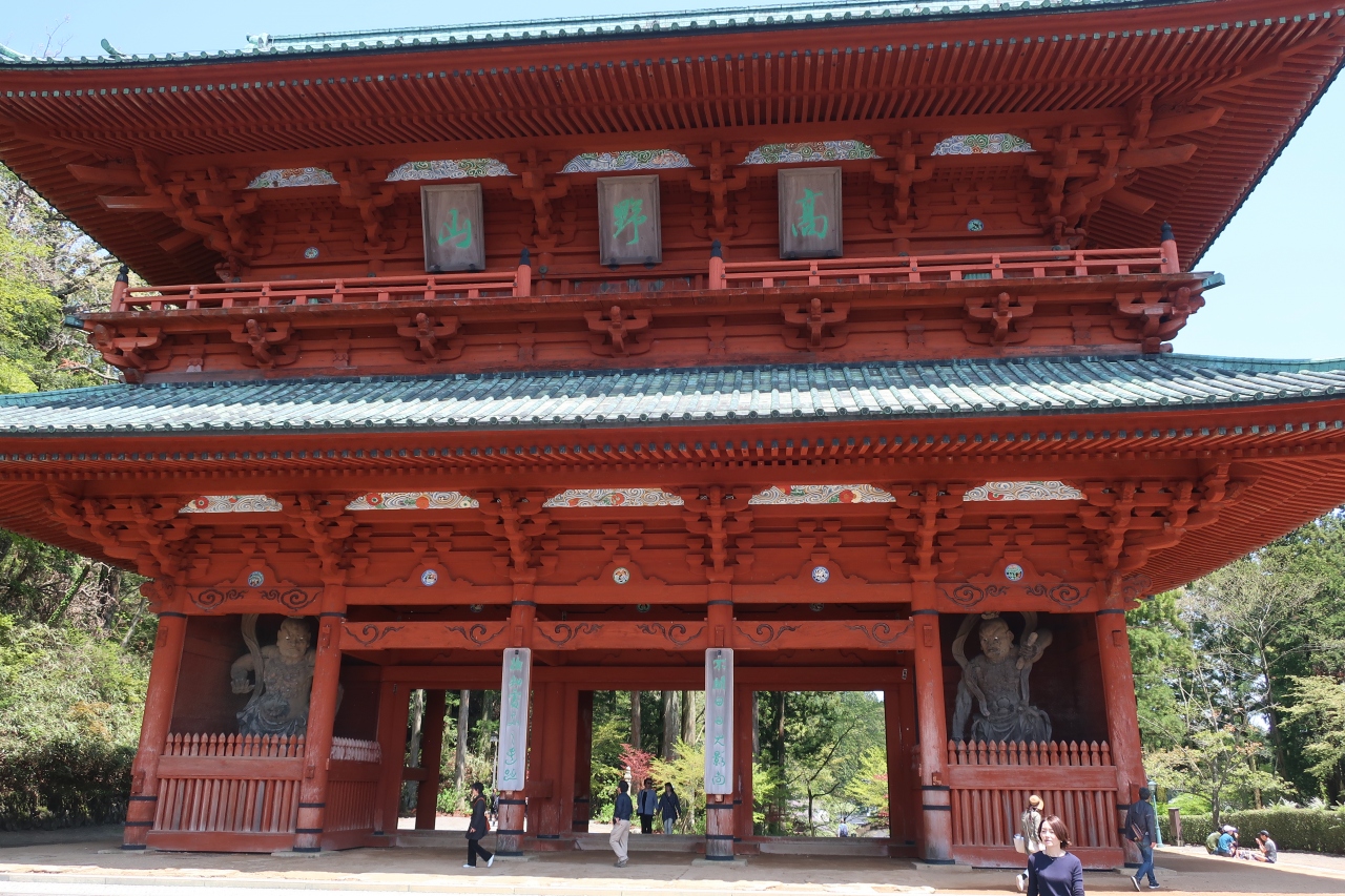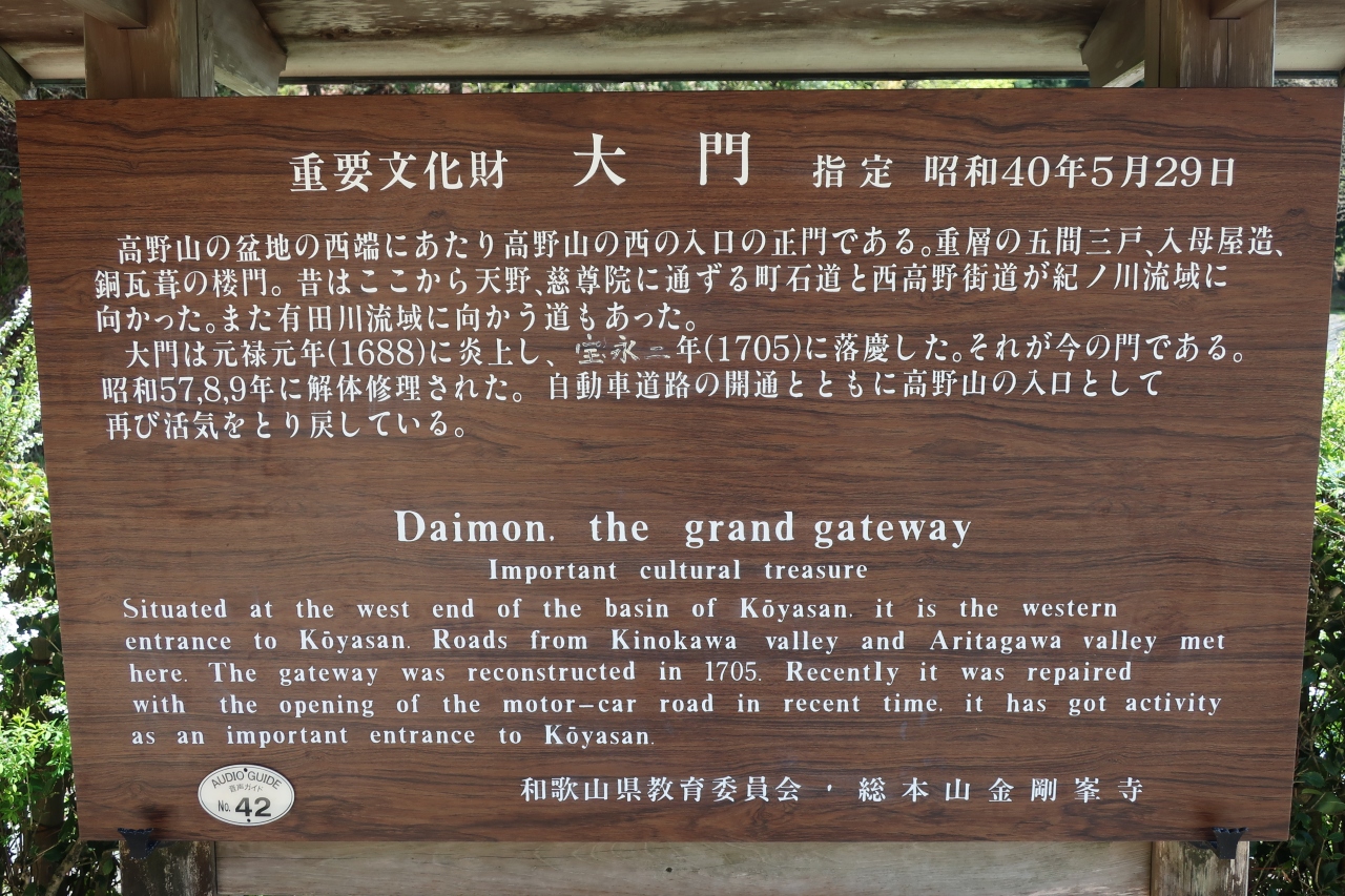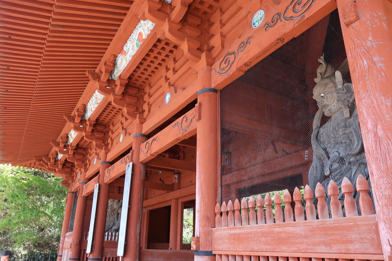 国道480号線から高野山に行くと最初に現れる大きな楼門が大門です。朱色が艶やかな大門は200年前に再建された門で、高野山の入口を守るのに相応しい門です。そして見逃しなのが、門の両側に安置された阿吽の金剛力士像。なんと国内2位の大きさだそうです。門が大きいだけに気付かない人が多いですが、相当な大きさです。