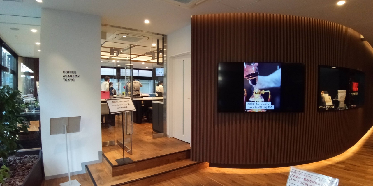 UCC コーヒーアカデミー東京校は、都営三田線の御成門駅から歩いて直ぐで、目抜き通りの日比谷通りの角地にありアクセスは抜群です。結構いつも賑わっていて、本格的なコーヒーのいれ方を習得できます。正面のショーウインドウには本物のコーヒーの木があって見逃せません。