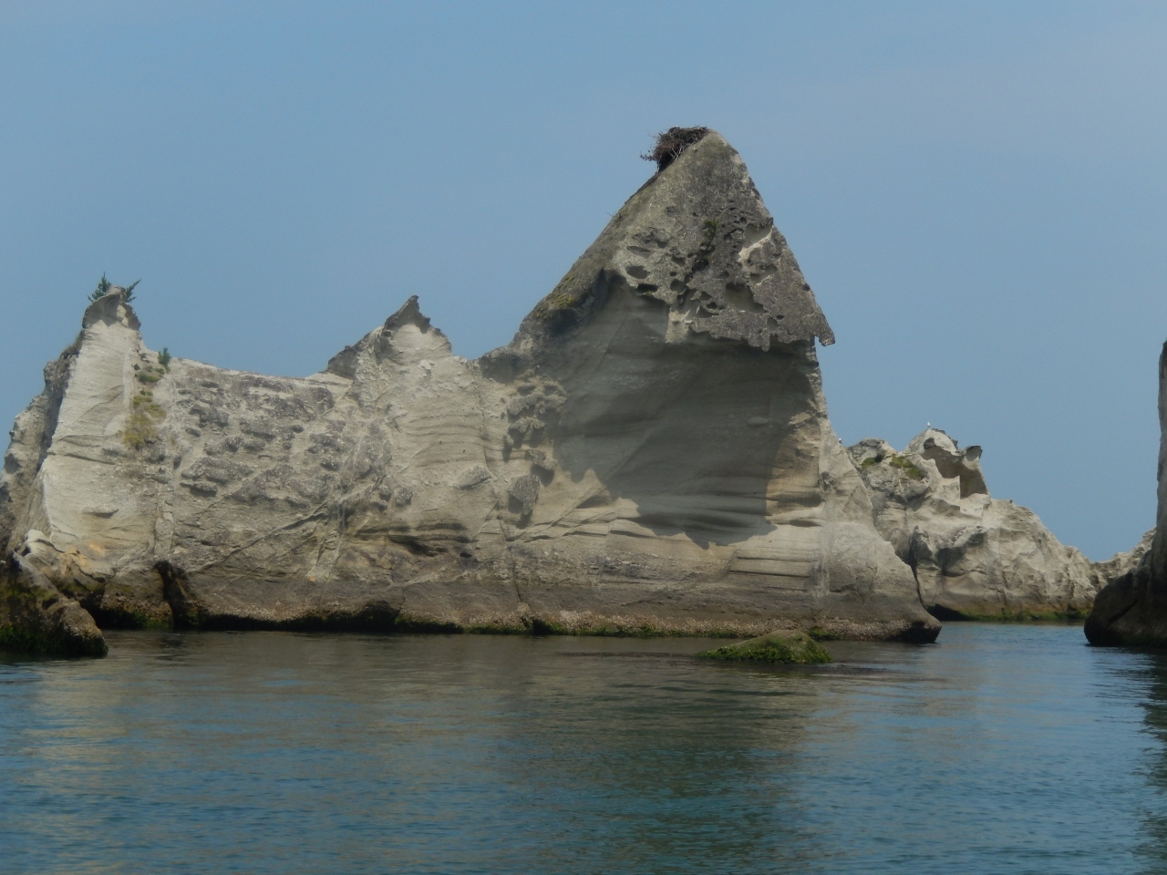 震災の時の津波の跡が見られる所もありました。ウミネコの多さにはきっと驚かれると思います。餌を上手にキャッチします。船べりにも止まってくれます。人なれしています。イタリアではありませんが、緑色の洞窟も見られました。