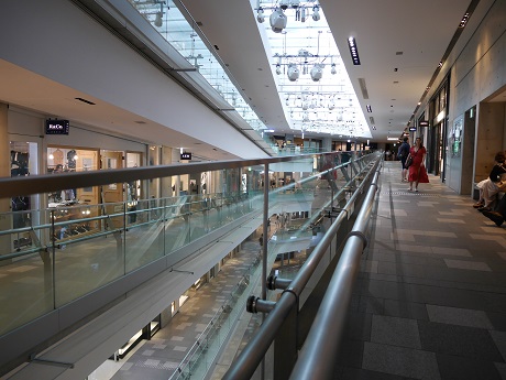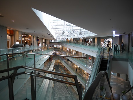 表参道のシンボル旧同潤会青山アパート跡に建てられた複合施設ですが、坂道なりの構造で内部の廊下も傾斜がついており昇降施設を使わなくても降りてこれる様になっている珍しい建造物でがバリアフリー的に見ると今一つですかネ~。これらが夏本番いくら先取りとは言えコートやジャンバーなど冬物を並べてるのはどうかなと思います。