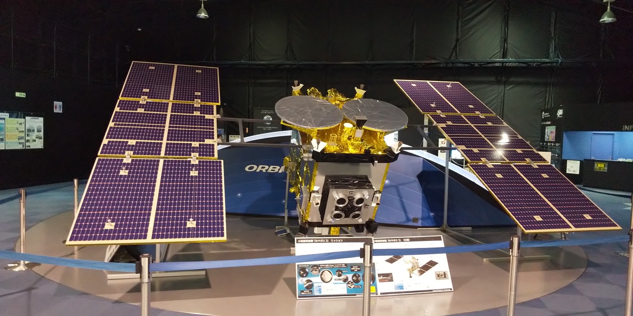スペースドーム展示館には、実物大の人工衛星やロケット模型、月の表面模型、国際宇宙ステーションの『きぼう』の模型の船内に入り宇宙飛行士の疑似体験もできます。