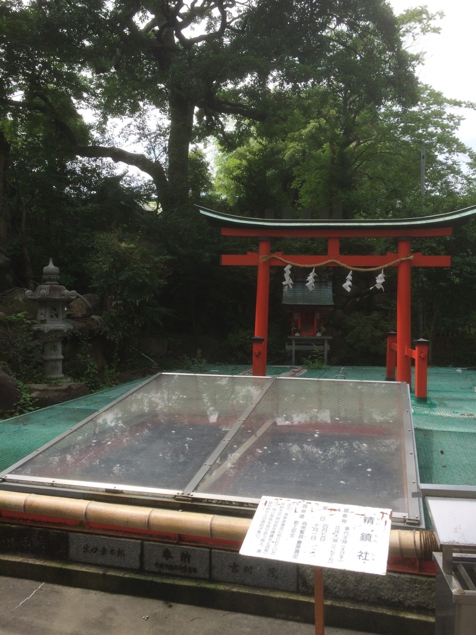 生国魂神社境内あり、少し下がった場所にある、上から見ると池かと思ったら、赤い鳥居があり、その後ろは赤い祠がありました。池のような水場が鳥居の上に建っているので、近くまではいけないようでしたので、少し遠くからの見学でした。