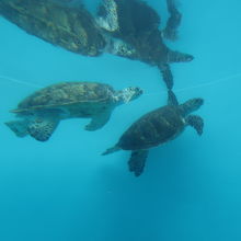 いくつかある水槽の中にいるウミガメを、地上から、階段を下りて横から、見ることができます。たまに近寄ってきてくれるカメもいて楽しかったです。