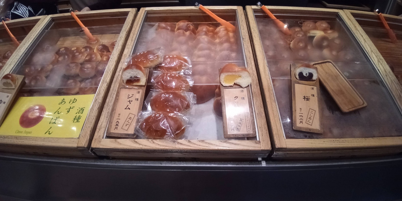 銀座木村家 (銀座本店)は、三越銀座店や銀座和光などの近くの超一等地にあって、いつも多くの人で賑わっています。アンパンは種類も多く値段もお手頃でたいへんおすすめだと思います。特に好きなのは、税込み162円の酒種桜こしあんアンパンです。