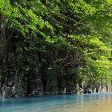 松川渓谷沿いに駐車場があります。 玄武岩あたりが一番警官がいいと思います。