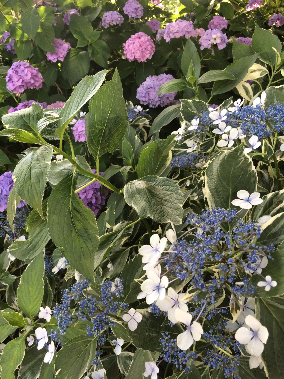 とてもよくお手入れされたローズガーデンで、無料で開放されています。6月半ばでしたが、様々な種類のバラが咲いていました。それぞれ名前が書かれた立札があって、バラの名前を知ることができました。6月だったのであじさいも咲いて見事でした。