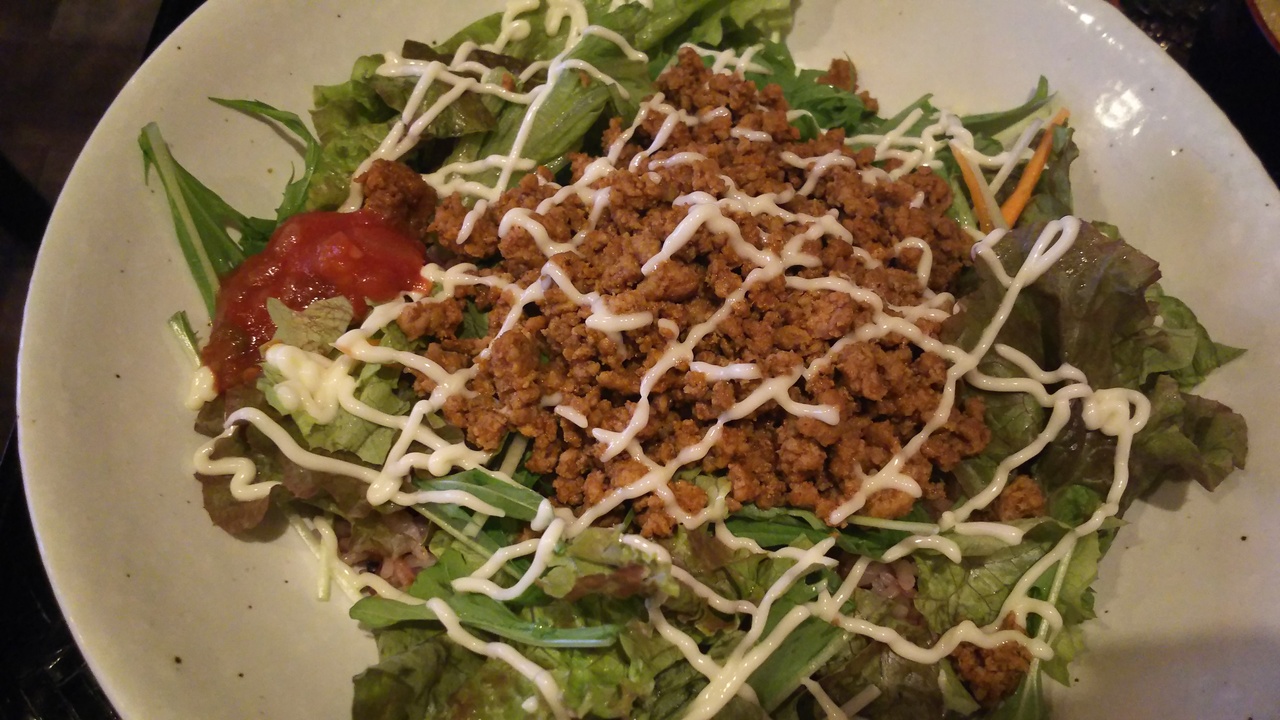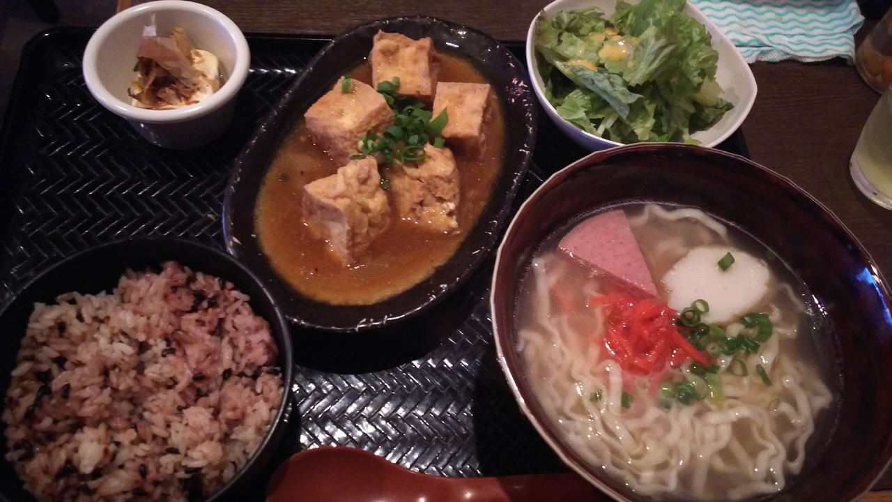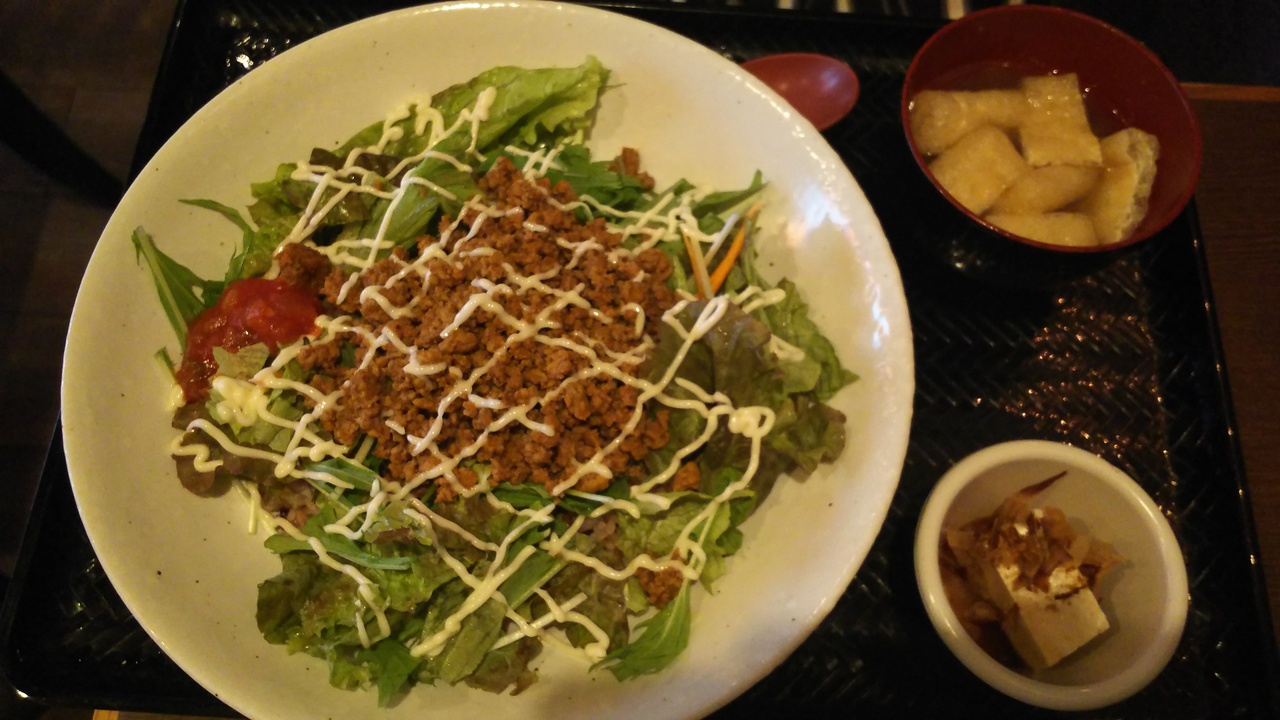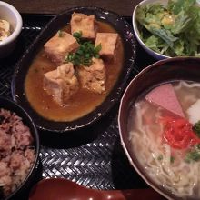 穀物ご飯、サラダ、島豆腐の冷ややっこ