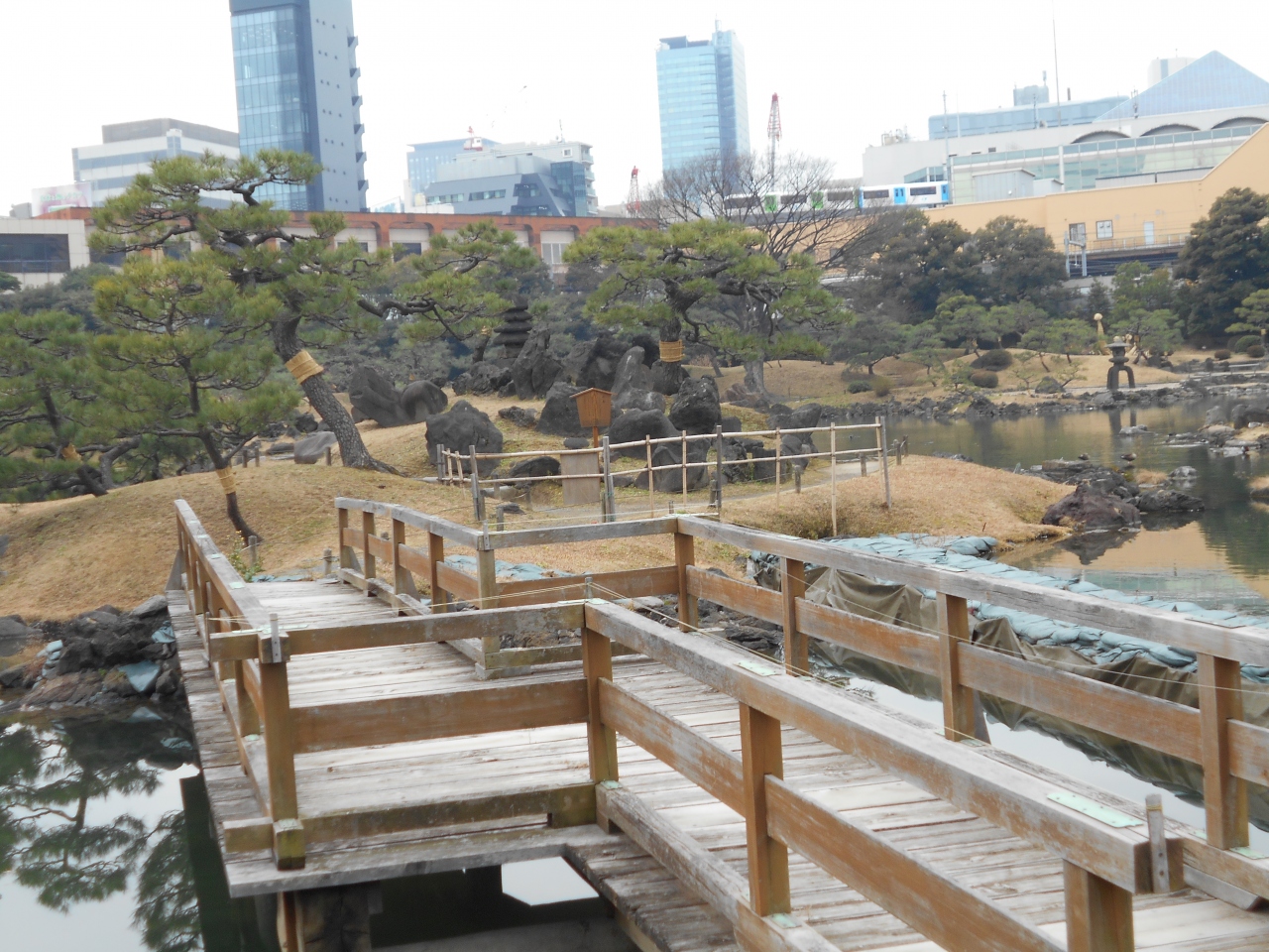 汐留の浜離宮恩賜庭園見学の後、いつも東京モノレールから見ている旧芝離宮恩賜庭園に行きました。江戸時代の老中大久保忠朝の邸地で典型的な池泉を中心とした回遊式庭園です。広さが桁違いでこちらはこじんまりとしています。静かで美しい池の周りをゆっくりと歩いても2時間かからず回れます。国指定の名勝となっています。都内には文化財指定の庭園が九つもあり有難いですね。入園料は¥150で65歳以上は¥70です。
