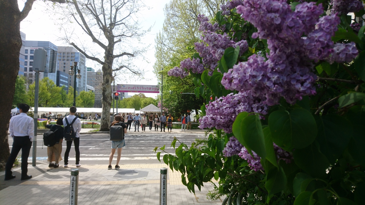 札幌の木、ライラック。このお祭りです。ライラックは、札幌の北星学園女子中高の創設者、サラ・クララ・スミスさんが持ち込み、広めたと聞きました。それが今や、札幌を代表するお祭りになりました。いつもの年は、「リラ冷え」という言葉があるように肌寒い日が多いのですが、この日は、天候に恵まれ最高の日でした。ライラックの木の下を通るとふわっとライラックの香りがするのも素敵ですね。