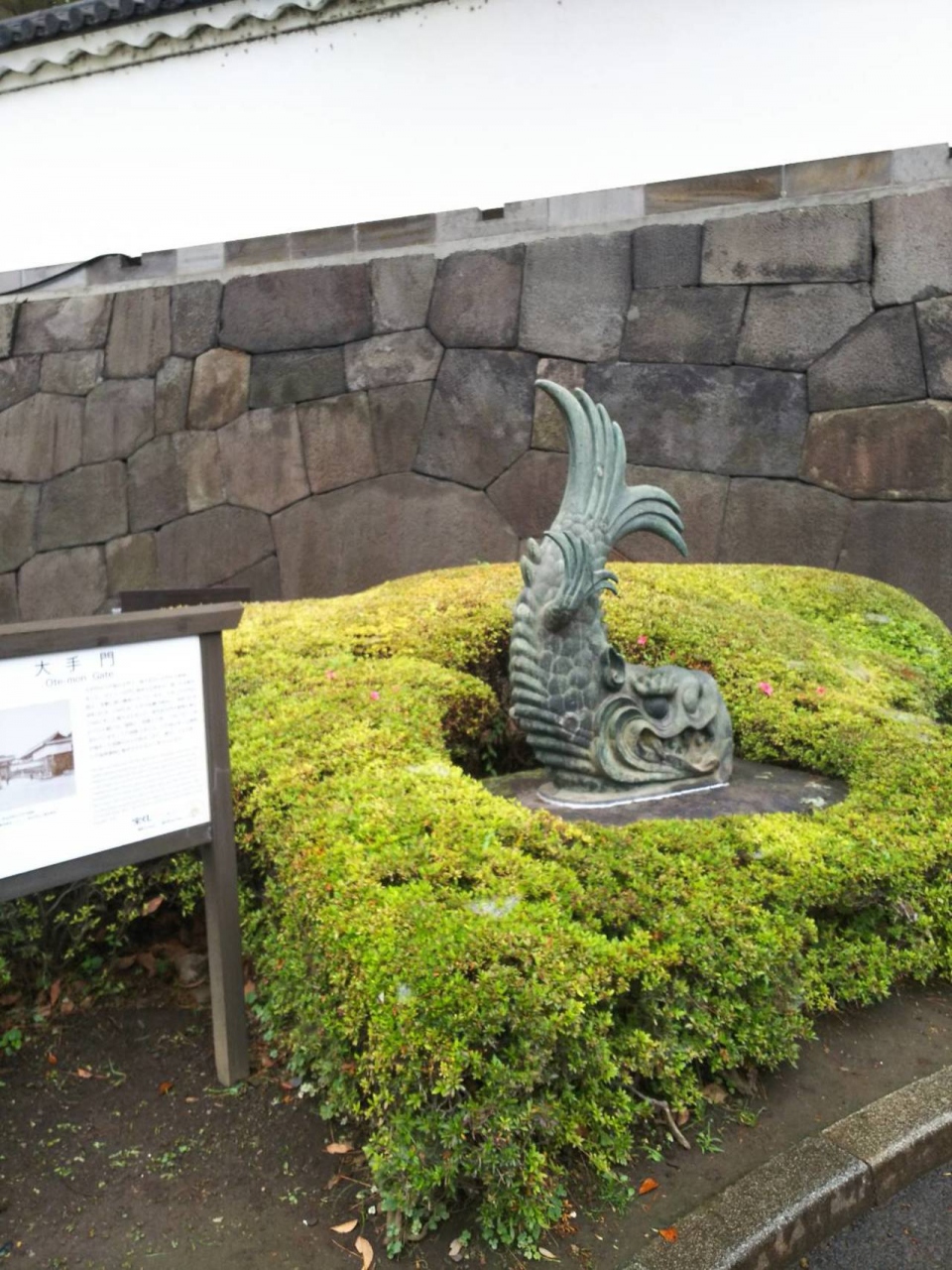 皇居東御苑入口付近にある大手門の門内に展示されている鯱です。この鯱は、旧大手門渡櫓にあったものだそうです。残念ながら戦災で大手門は焼失しましたが、残った鯱は現在も綺麗な形で展示されていて見ごたえがありました。