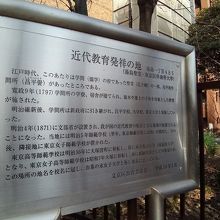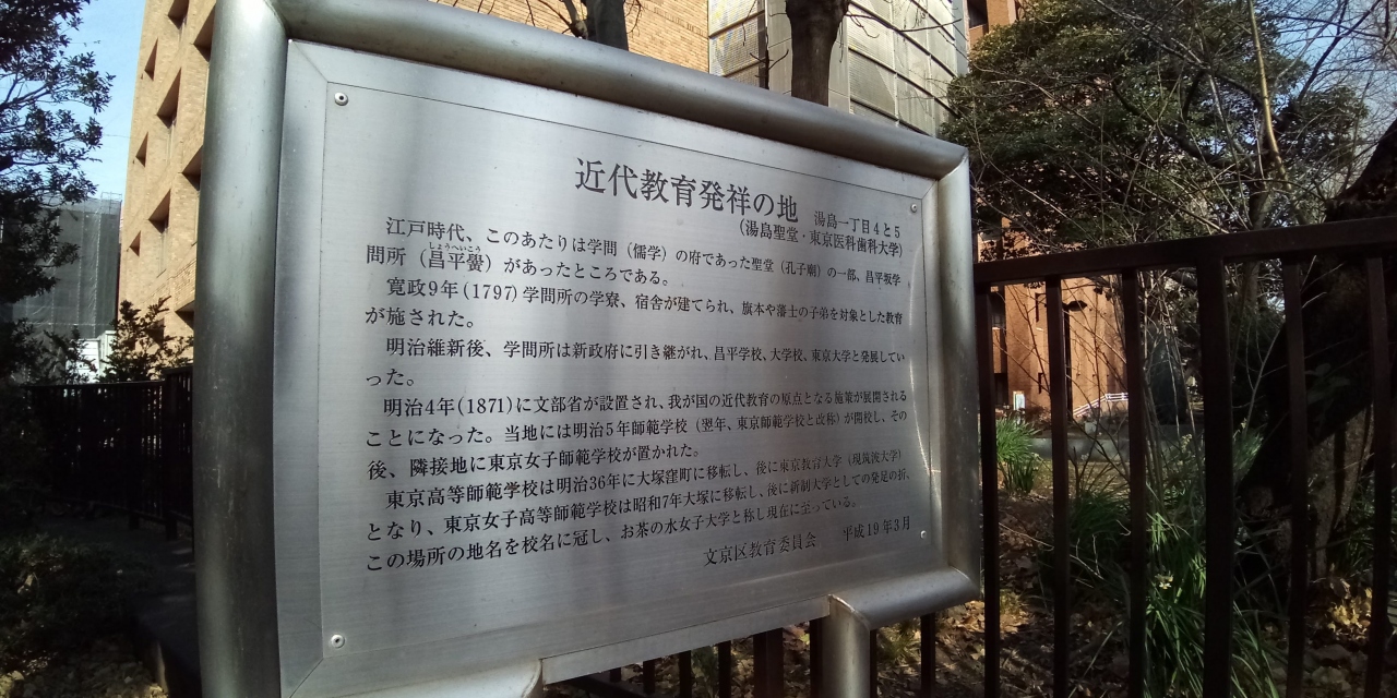 近代教育発祥の地には、今の筑波大学の前身である東京教育大学につながる師範学校とお茶の水女子大学につながる東京女子師範学校が設けられたそうで、感慨深く感じました。千代田区・中央区・港区・文京区などの都心は、歴史的意義のある名所が多いと実感しました。
