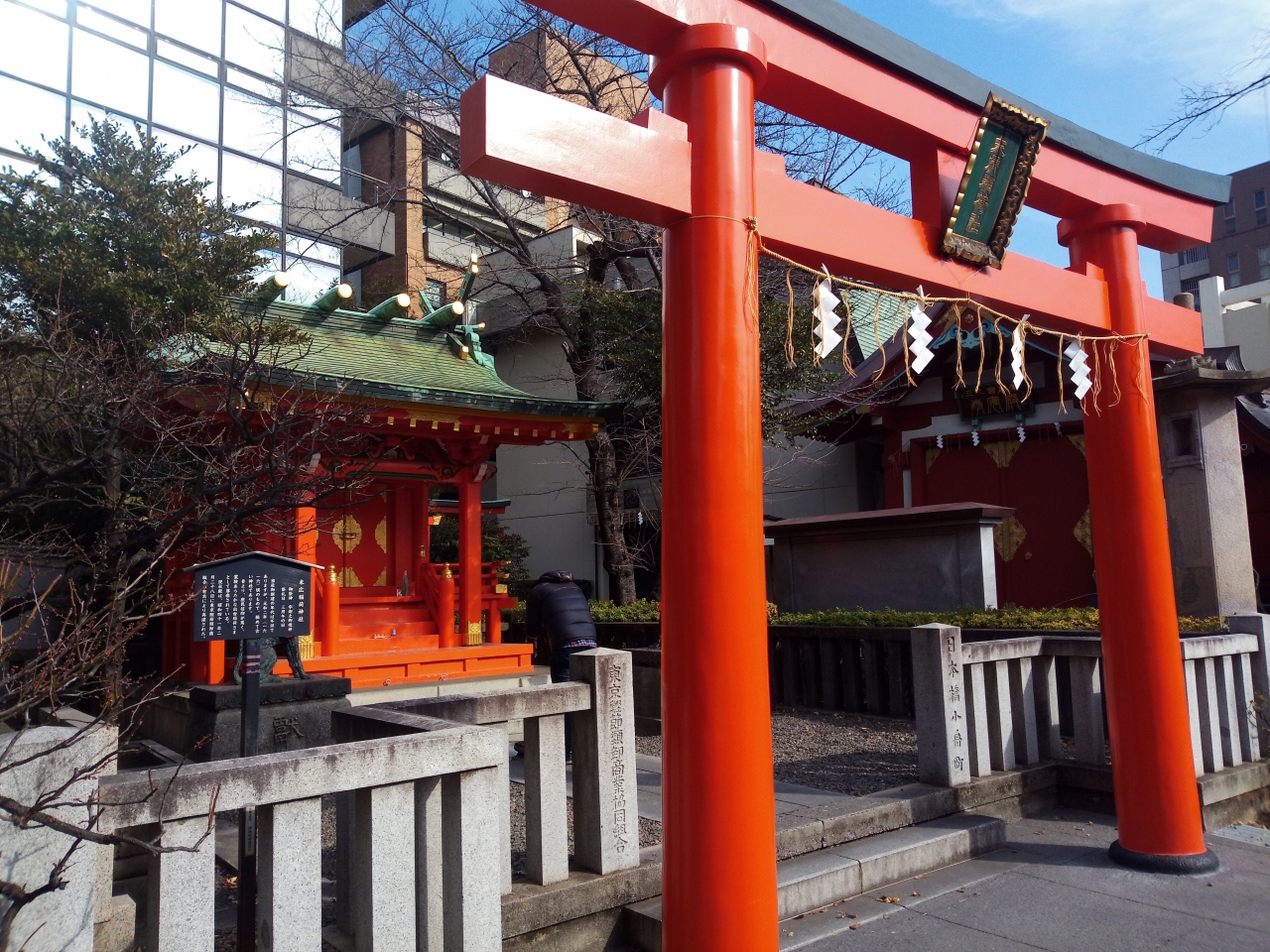 神田明神 末廣稲荷神社は、神田明神の中にある小さな神社です。赤い鳥居は普通ですが、赤だらけの色の小さな建物がたいへんきれいで、説明板も完備されています。神社の中にさらに神社があるというのは、非常に興味深かったでした。