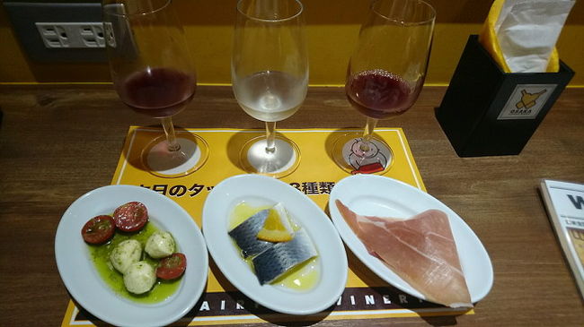 マリアージュセット1280円をいただきました。3種類のワインに3種類のおつまみがつきます。搭乗までの間飲むには良いお店だと思いました。
