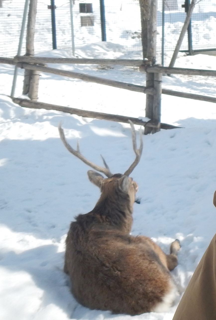 この日はまだ角も健在で、フカフカの冬毛の、この時期ならではの姿を見ることができました。