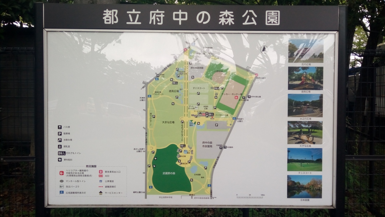 府中市にあるとても広い都立公園で、公園内にはテニスコートなどのスポーツ施設や美術館などがあります。