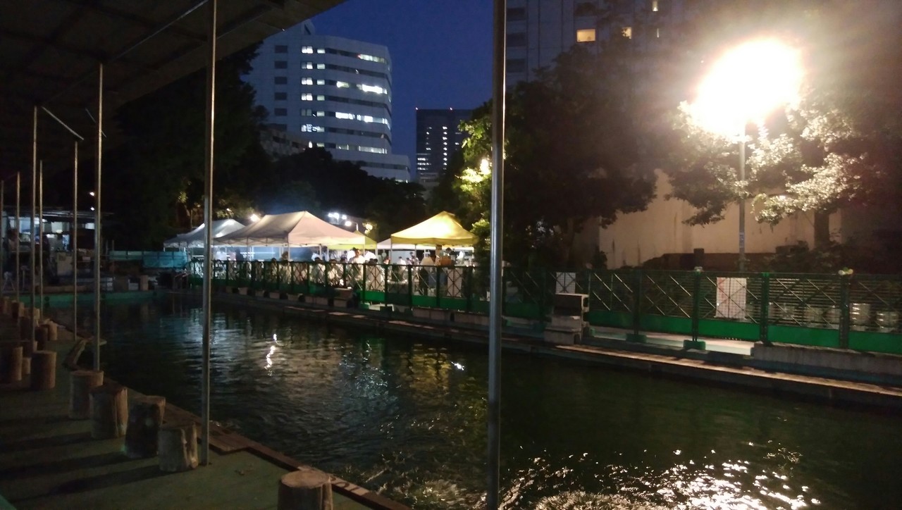 昼間は釣りが出来るのか、フィッシングガーデン内にあります。