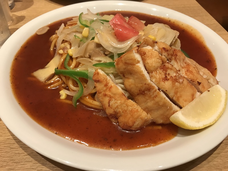 地下鉄伏見駅のすぐ近くにあるあんかけスパゲティのお店です。この近くのホテルに宿泊していたので、ここでお昼ごはんを頂きました。パスタの量をスモール、レギュラー、ジャンボから選べます。レギュラーにしましたが、レギュラーでもかなりのボリュームでした。から揚げは薄っぺらな形でしたが食べやすかったです。