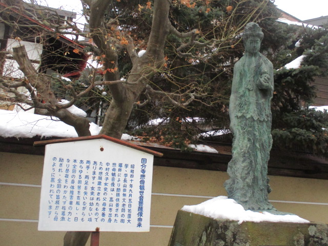 やはり国分寺と言えば、三重の塔と大イチョウでしょう。しかし境内を歩いていると、素敵な菩薩様を見つけました。「国分寺慈母観世音菩薩像」です。非常に柔和な表情をしておられて、心が洗われるようでした。あとドレスを着ているように見えるのは私だけでしょうか?
