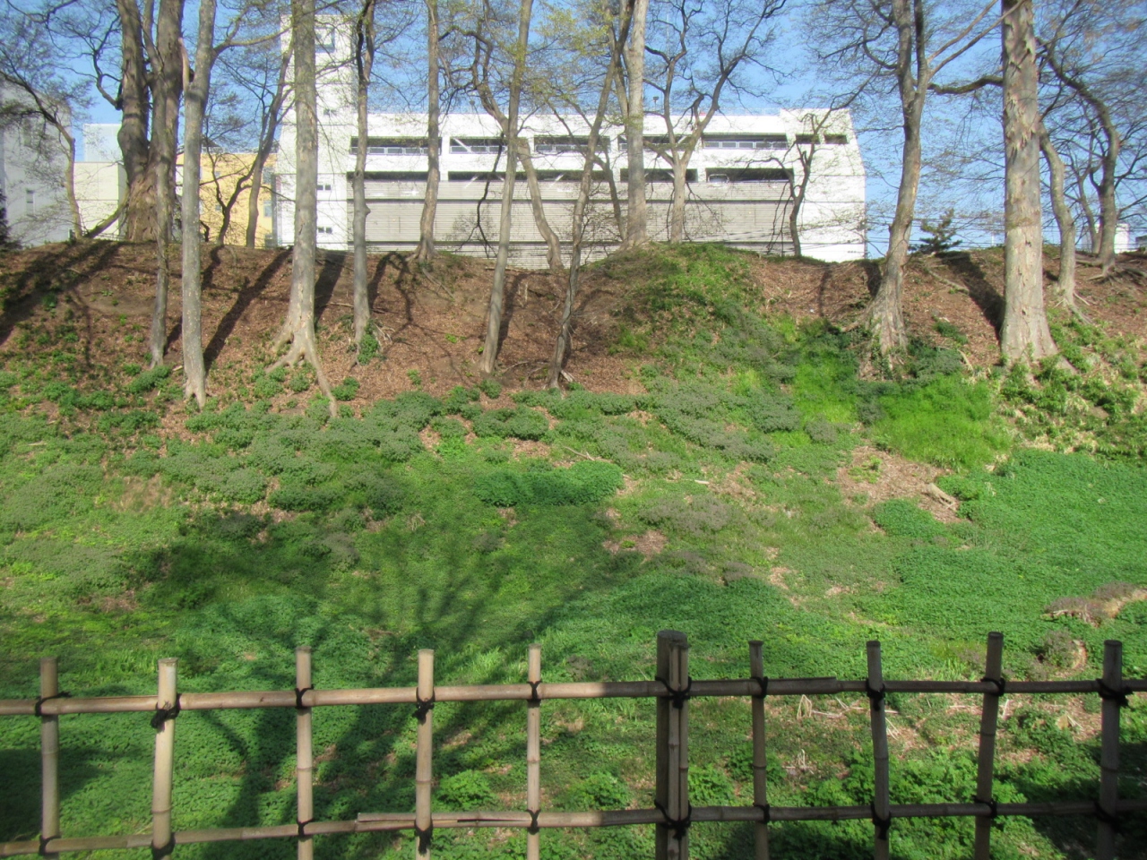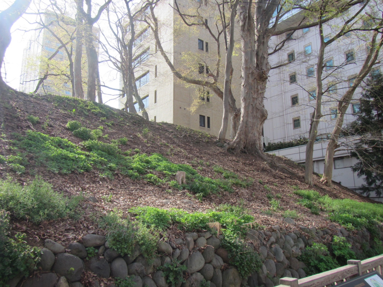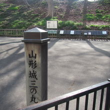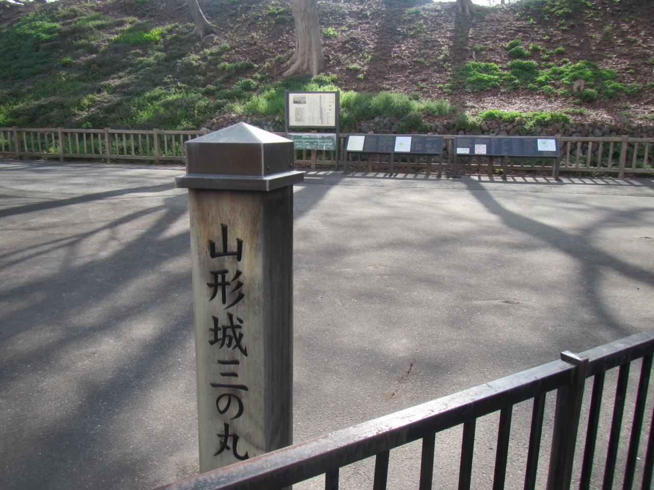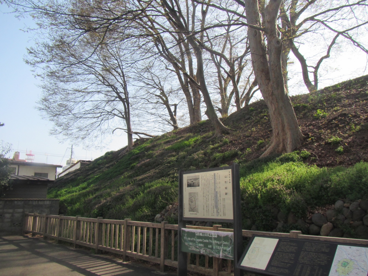 山形市の中心部、山形駅前大通り沿いの歌懸稲荷神社の裏手に山形城三の丸の土塁跡がよく残っています。