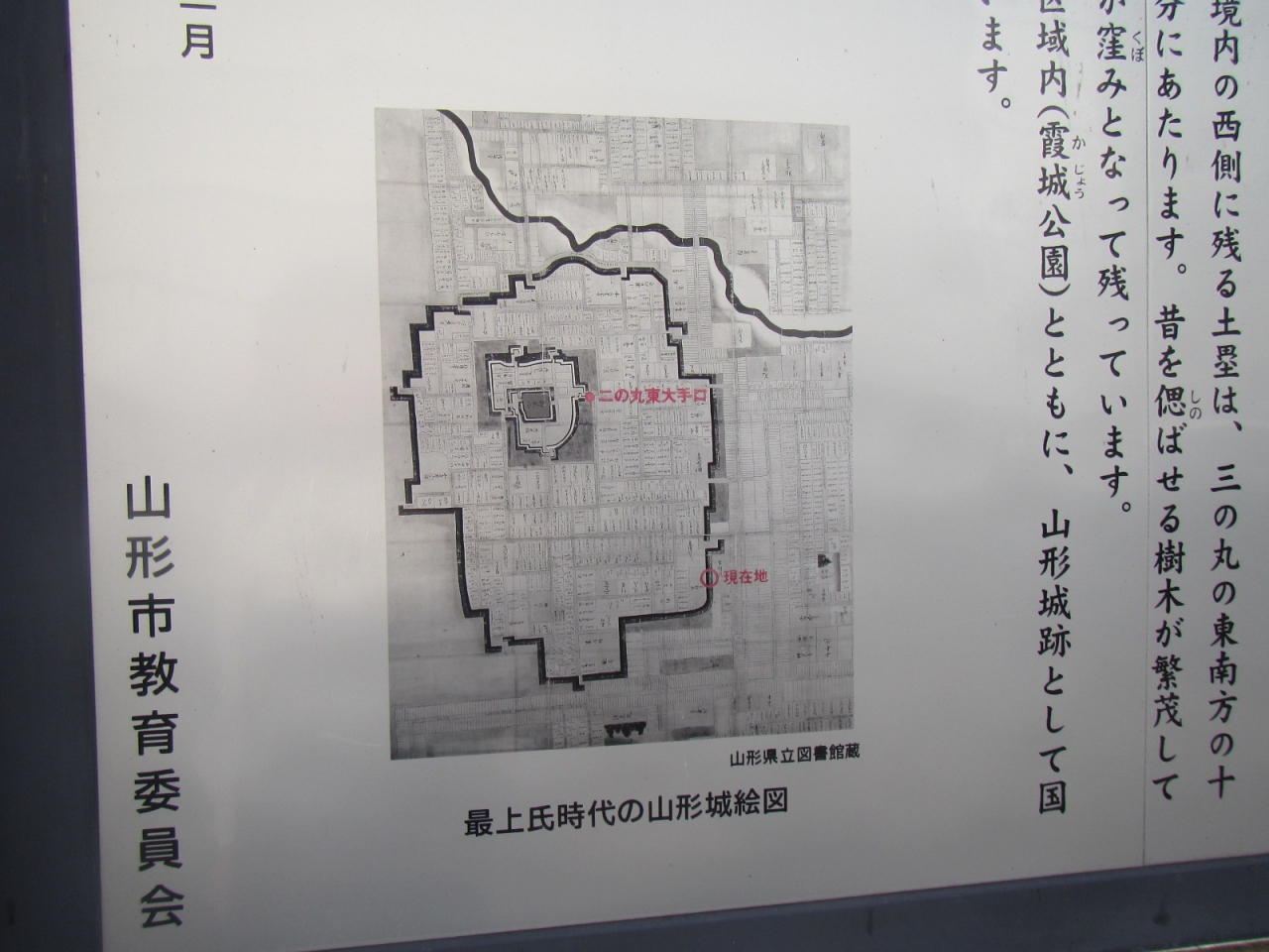 しかし、現在の山形城からは結構、離れており(霞城公園まで歩いてみるとよく分かる)、昔の山形城がどれだけ大きかったかが偲ばれます。