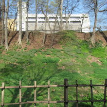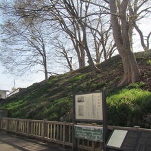 神社から、本殿の裏に回るか、もしくは神社から1本、山形駅側の通りに駅前大通りから入ると、土塁を見ることができます。