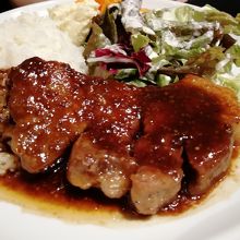 ランチ限定の「トンテキセット」(990円)をいただきました。豚の肩ロースを10時間低温調理してあるそうです。見た目は厚みがありボリュームがありますが、とても柔らかく食べやすかったです。