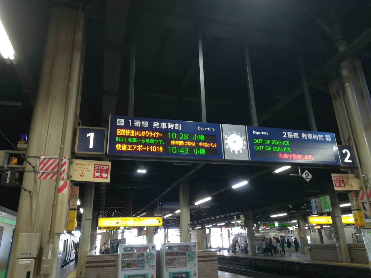 帰りは平日の朝だったので指定席を取りましたが、これが正解でした。通勤通学でかなり混みあうので大きなスーツケースだと大変だったと思います。