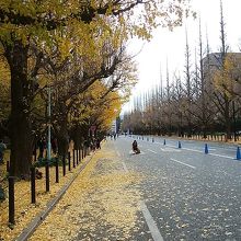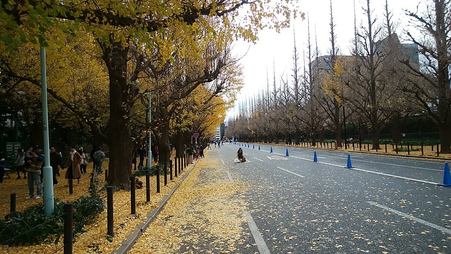 私が訪れたのは12月初旬で既にほとんど散ってしまっていたのは残念でしたが、歩道が一面にイチョウの葉で埋め尽くされていて何とも言えない美しさでした。