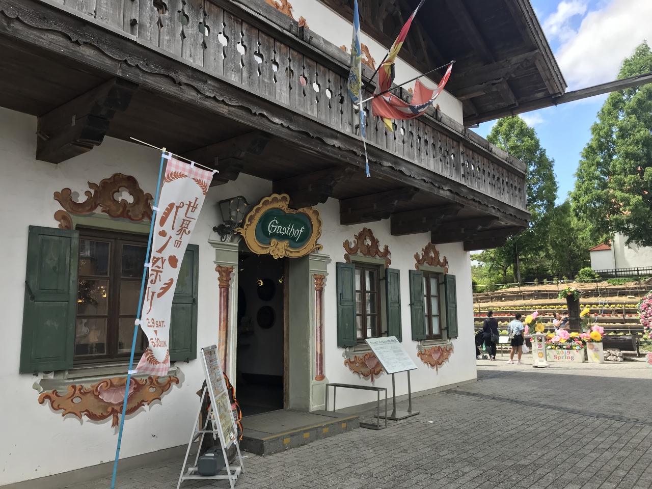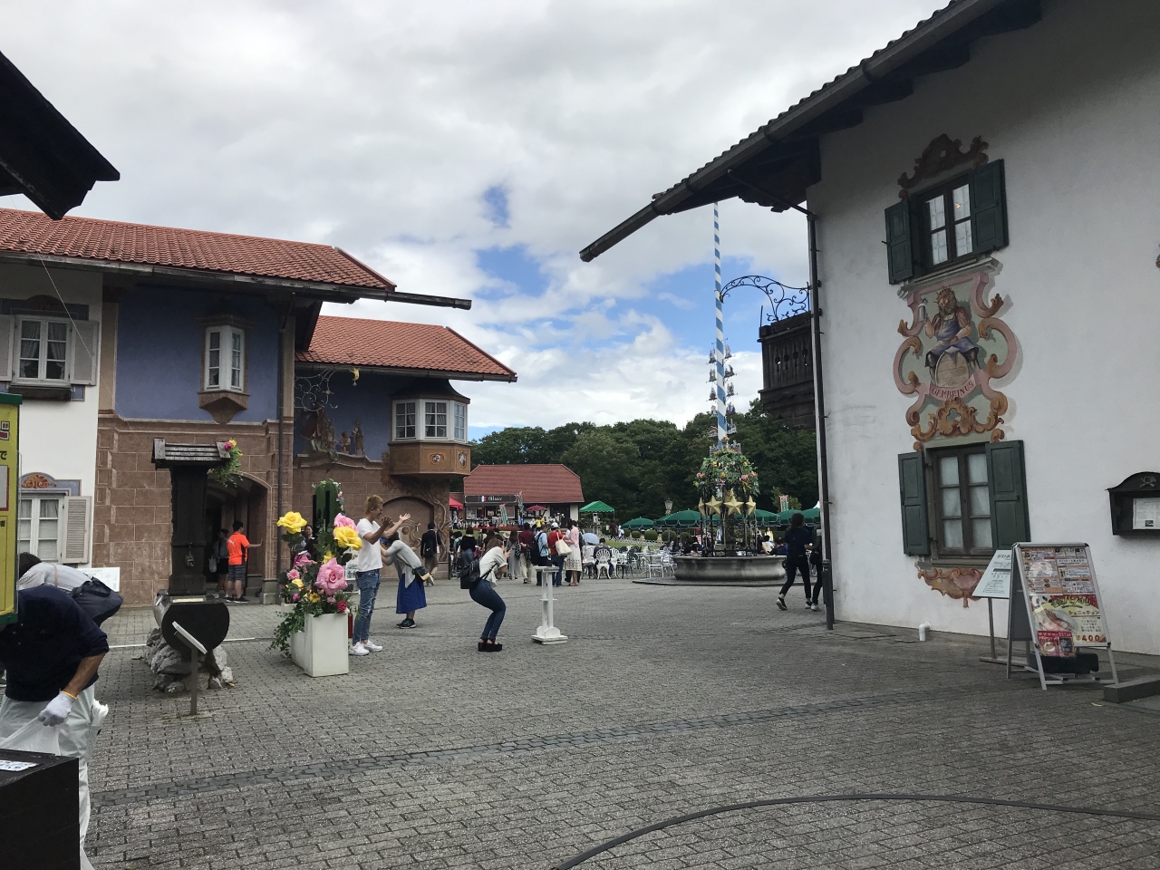 ドイツのバイエルン州の村が再現された一角で、旅籠をモデルとした家屋と商家をモデルとした民家と礼拝堂がありました。壁には宗教画が描かれていて、町並みが綺麗です。お土産屋さんにはフーバーのプレッチェルの大袋が売られていました。好きな人にはたまりません。